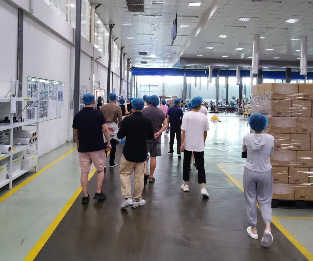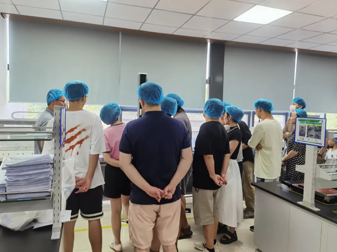 在公司副总和生产负责人的带领下,同学们参观了生产基地一期和二期的自动化无菌产线,以及研发创新实验室。公司引进了JIT生产理念和专业的面板管理技术,实现了低碳、低能耗、高效率的自动化生产。
