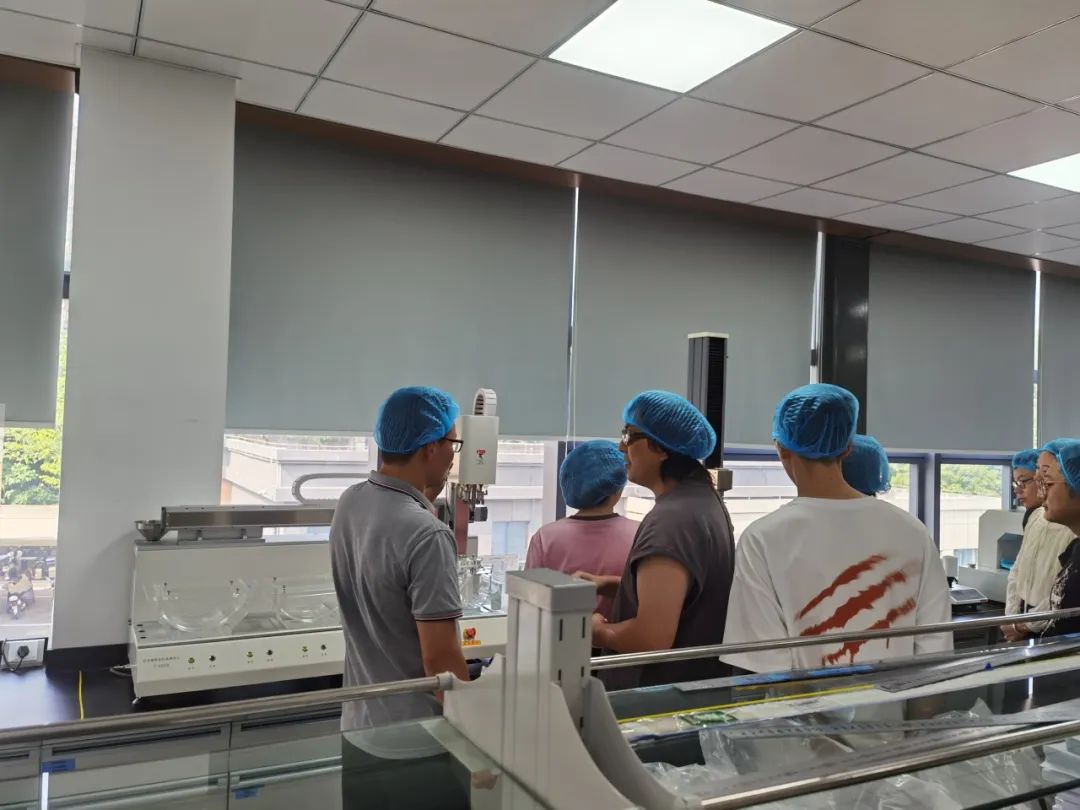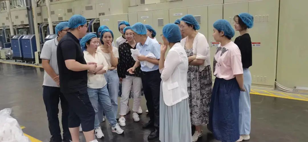 研发创新实验室负责公司婴幼、成人护理用品相关创新项目测试,先进的工艺设备和实验流程让同学们大开眼界,大家展开了热烈的探讨。
