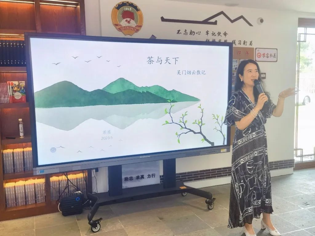 在冯梦龙书院,相城区文体旅局副局长、文联副主席、作协主席苏文娟带来了“茶与天下——吴门烟云散记”文化专题讲座。在这一场别开生面的讲座上,大家了解了茶的历史、食药功用、江南文化与茶的渊源等方面的知识,同时了解了冯梦龙村在历史文化传承、文旅新业态拓展、新经济产业结合等方面的做法。大家对冯梦龙村充分发挥文化优势,积极抢抓发展机遇,推进乡村振兴新实践方面取得的成效纷纷点赞。