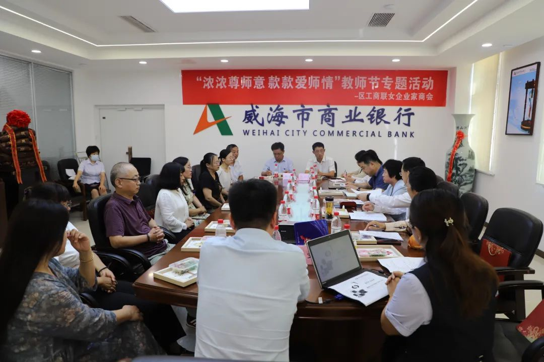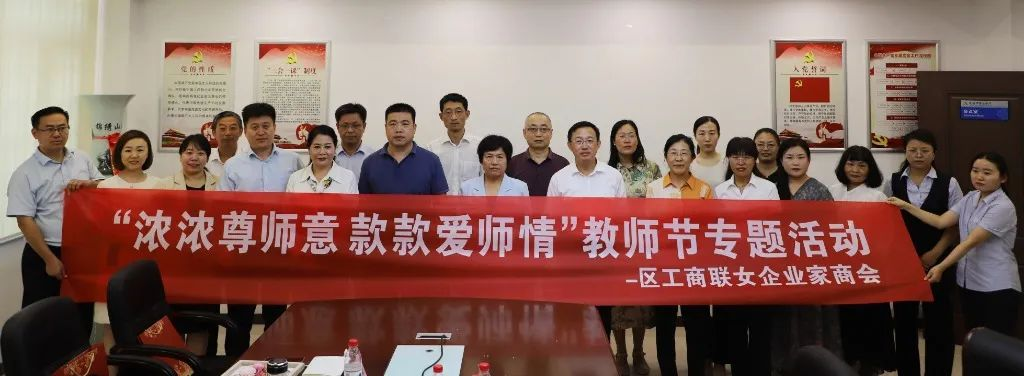 9月7日下午,区工商联女企业家商会与其会员单位威海市商业银行济阳支行共同开展了“浓浓尊师意 款款爱师情”教师节活动。区政协副主席、区工商联主席于爱华,区委统战部分管日常工作的副部长、区台办主任卢波,区教育和体育局党组成员、副局长姜延元,区工商联党组成员、副主席兼秘书长杨静,区工商联女企业家商会会长李桂香、副会长陈廷、常务理事罗曼、董云菊、威海市商业银行济阳支行负责人以及部分教师代表参加活动。