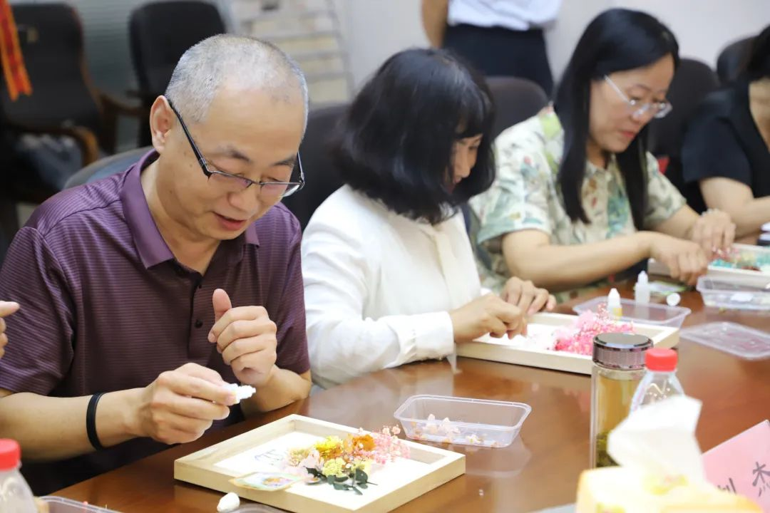 活动中,威海银行工作人员为大家讲解了防范金融诈骗的相关知识,参会人员共同参与了永生花制作。本次活动还为教师代表发放了精美瓷杯等慰问品。