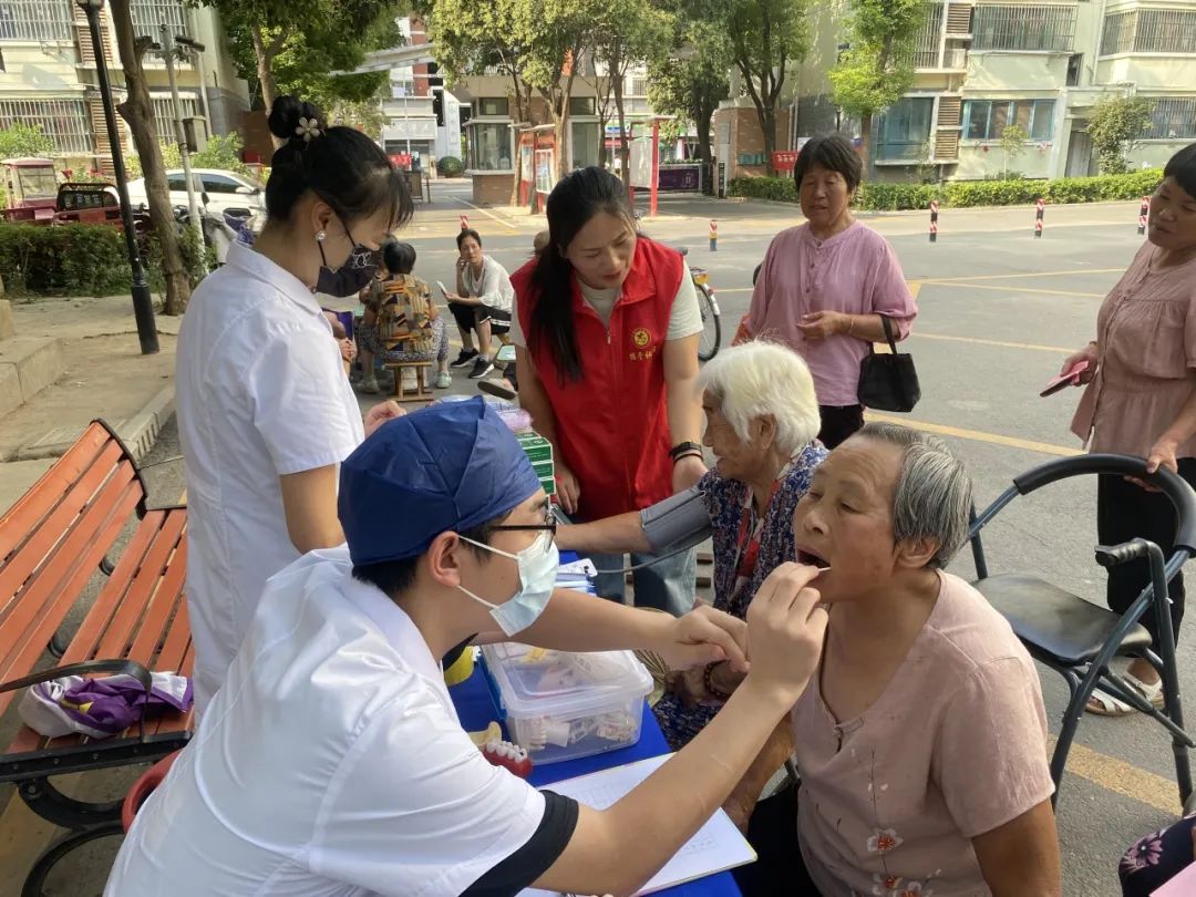 活动现场,植德口腔门诊的志愿医务人员张医生和王医生为每一位前来就诊的社区老人提供免费量血压、口腔检查等诊疗服务,医务人员详细询问老人们的身体状况,向他们普及疾病健康知识,做到疾病早预防、早诊断和早医治,提高防病治病意识。