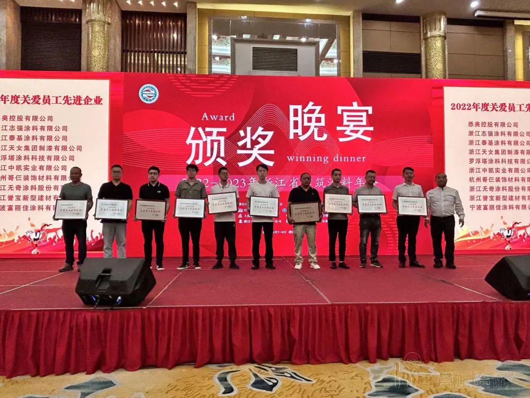 下午会议结束后,协会安排了颁奖晚宴,无奇涂料有限公司荣获2022年度慈善先进企业和2022年度关爱员工先进企业,非常荣幸能获得2项荣誉。感谢浙江涂料协会对我公司的肯定、信任与支持,这是一份荣誉,更多的给无奇带来是一种动力,鞭策着无奇把企业做大做强的同时,更多的承担一些社会责任。