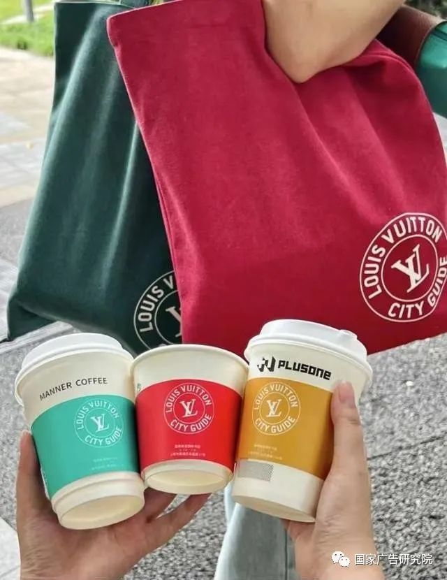 第二,品牌联名中的“资产变现”。如前文所述,在“爆款”思维的驱使之下,上述联名案例都有相关的热销产品创新。值得注意的是,除了传统的功能属性之外,这些产品在视觉色彩、品牌标识以及口味方面对奢侈品牌感官碎片的使用和强调,成为了联名产品非常重要的外在特征,甚至是其备受追捧的主要原因。例如,Fendi与喜茶联名中,Fendi的“喜悦黄”主题色,使得喜茶的纸杯从一次性消耗品秒变高价收藏品,身价翻了几百倍。这是“颜色”作为品牌碎片在联名活动中的价值放大。LV与Manner的案例中,印有LV logo的帆布袋需要购买几百元的书籍才能获赠,由此引发的抢购热潮除了让粉丝自愿排队购买之外,还带来了二手平台上的溢价转卖,这是“标识”作为品牌碎片在联名活动中的价值放大。茅台与瑞幸咖啡联名推出的“酱香拿铁”,虽然在设计上使用了鲜明的茅台视觉元素,但最为重要的是其中添加的“茅台真酒”,虽然官方再三声称每杯拿铁中的酒精含量很少,但依然成为很多人趋之若鹜去体验、打卡的重要原因。而且这已不是茅台第一次采用以产品碎片赋能其他产品、提高附加价值的方法。在酱香拿铁之前,茅台冰淇淋就曾主打其中含有茅台真酒的卖点,引发消费者的好奇心理,催生购买和分享行为。这是“产品”作为品牌碎片在联名活动中的价值放大。