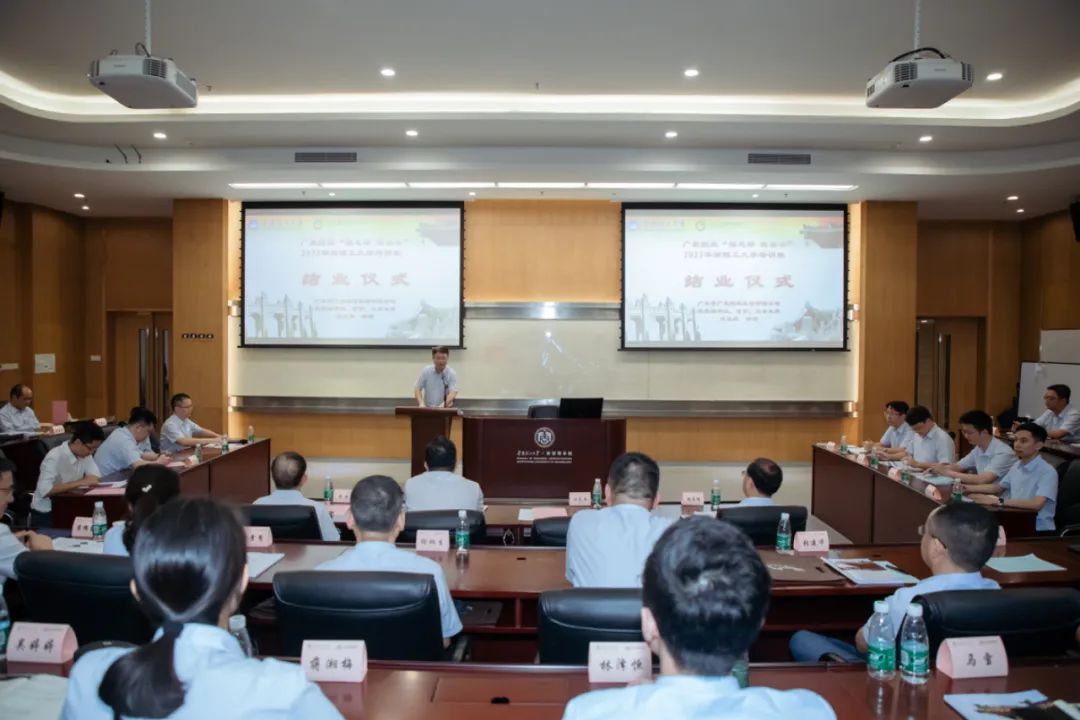 华南理工大学大湾区培训学院相关领导和老师,广晟控股办公室(党委办公室、董事会办公室)、人力资源部(党委组织部)主要负责人及全体学员参加了结业仪式。