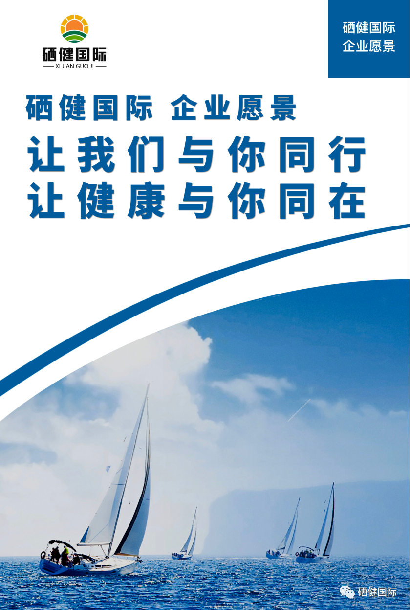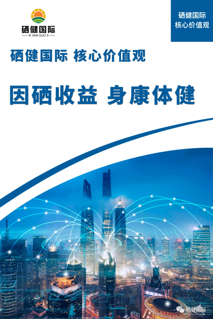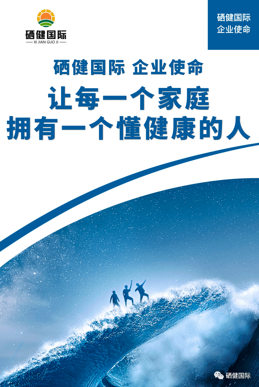 公司以“让每一个家庭 拥有一个懂健康的人”为使命,秉承“因硒收益 身康体健”的核心价值观,助力国人提高硒摄入量,改善国人的亚健康状况,为健康中国贡献自己的一份力量。