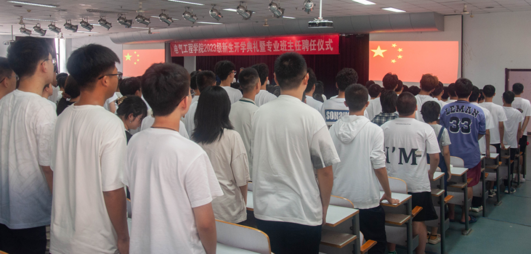 9月7日下午,在庄严的国歌声中,电气工程学院2023级新生见面会暨专业班主任聘任仪式在讲堂群102拉开了序幕,学院党委书记张文林出席并讲话,典礼由学院党委副书记吴莎主持。