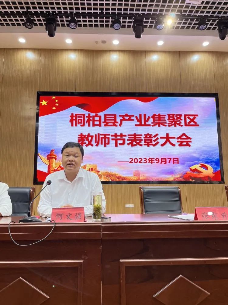 金秋送爽佳节临,红花硕果暖人心。我们相聚一堂,隆重举行桐柏县产业集聚区第39 个教师节表彰大会,本次大会主要任务是总结一年来教育工作的成绩,安排部署今后工作。为激励全区各级各部门和广大教育工作者,进一步统一思想、坚定信心,开拓进取,奋发有为,为加快实现教育强区,奋力推动“四区建设”、助力高质高效推进中国式现代化建设桐柏行动而凝心聚力、砥砺前行。