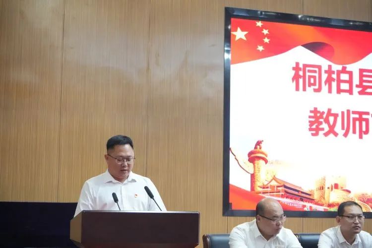 教体局党组书记徐书记首先代表教体局向各位教育界的同仁致以节日的问候和崇高的敬意,感谢教育者们对桐柏教育的付出,同时向县委县政府、县产业集聚区的各级领导们表示衷心的感谢。徐书记在讲话中强调我县始终把教育摆在优先发展的地位,深入实施教育强县工程,持续加大教育投入力度,基础设施不断完善,教育教学质量明显提升,义务教育优质均衡推进,效果明显。徐局长也谈了几点自己的看法。