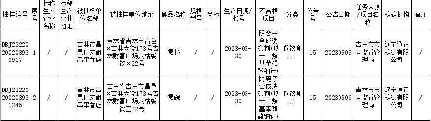 近期,吉林市市场监督管理局抽检普通食品113批次样品,不合格样品2批次。检测项目见附件。具体情况如下: