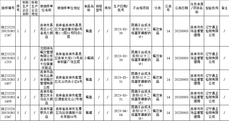 近期,吉林市市场监督管理局抽检食品112批次样品,不合格样品5批次。检测项目见附件。具体情况如下:
