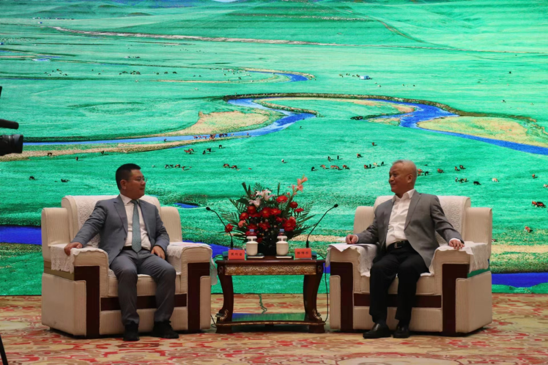 当日,自治区有关部门、盟市与商会代表团进行座谈交流。自治区党委副书记杨伟东,自治区党委常委、统战部部长胡达古拉,自治区副主席杨进,自治区政协副主席孙俊青出席会见。