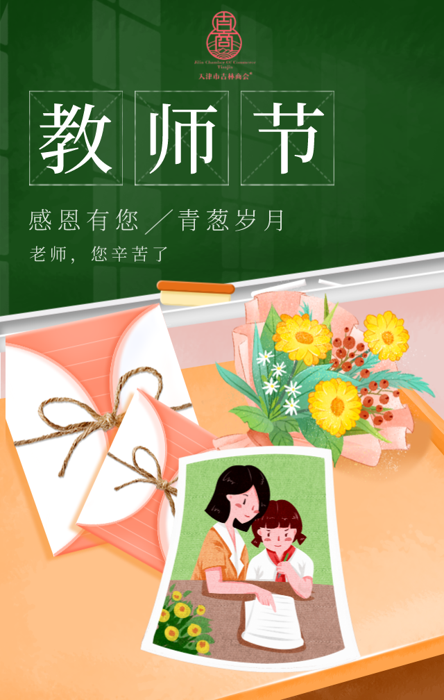 丹心映日月,赤诚浇新花。秋果结累累,桃李满天下。值此教师节来临之际,天津市吉林商会会长刘福生携商会领导班子及秘书处,向广大教师致以节日的祝贺和诚挚的祝福,祝愿全体老师,教师节快乐,幸福安康!