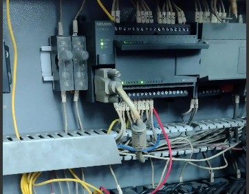 经查,发现接触器达到设定温度后不断开,结果一直烧继而高温报警,如果不急时停机,风管上的热敏电阻就会强制断开,而热敏电阻复位又要好几分钟,所以就出现了,一会高温一会又不加热的现象,为什么接触器会脱不开呢,进一步检查发现plc的输出点粘连了,指示灯灭了还有电压输出,问题确诊了,拆plc出来修。