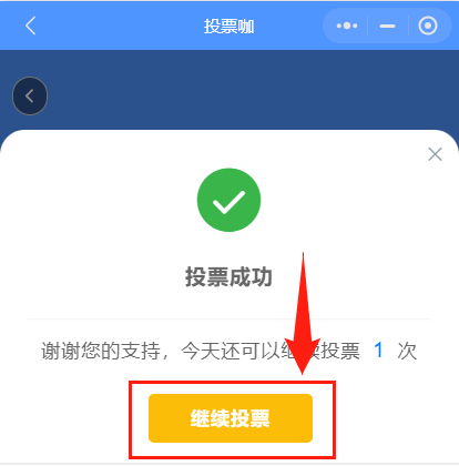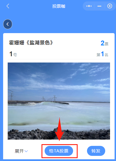 (2)投票流程:进入“投票咖”小程序后,点击“投票”,即视为选择该作品,点击"给TA投票"即完成投票,点击”继续投票“则会留在当前投票作品页面,这时可以选择继续投票给当前作品,也可返回首页重新选择其它作品进行投票,首页下方点击“排名”即可查看所有作品的排名情况。