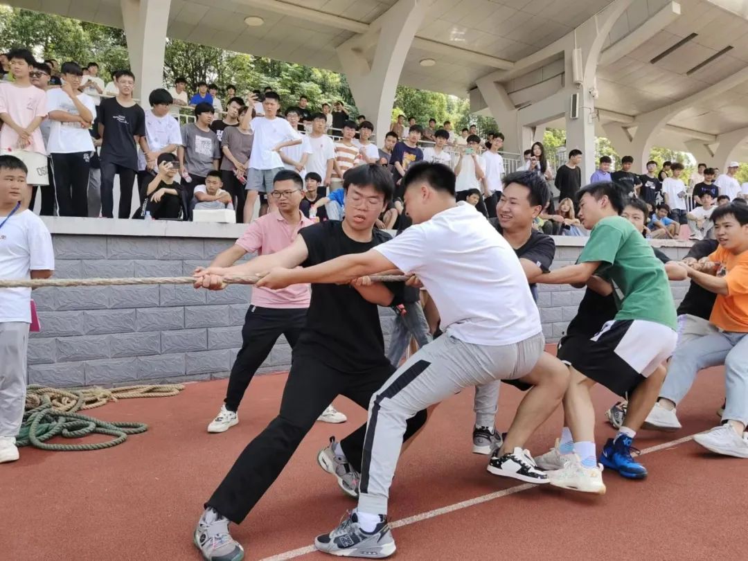为了让学生的课外活动更加丰富多彩,培养他们集体荣誉感、归属感和责任感,促使他们团结协作、不怕吃苦、勇于拼搏良好品质的养成, 增强学生体育锻炼的意识,增进新生各班之间友谊,实现“五育并举”,学生全面发展的良好局面。2023年9月8日上午,机电工程学院在学校田径场举办2023级新生拔河比赛,学院2023级各班代表组成的17个拔河队参加了此次比赛。