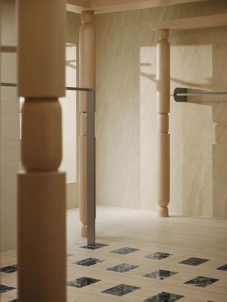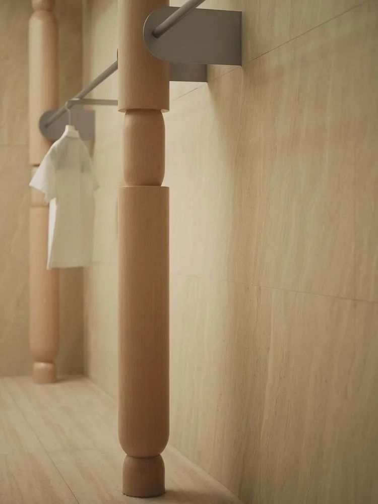 朴素的美。我们利用古希腊建筑中最突出的元素——希腊柱的优美结构,形成蜿蜒的运动线,让每个人都可以定制自己的运动线,继续自己探索和发现。方与圆,曲折与曲折,赋予空间无尽的变化。木柱不仅在色彩上传达着东方的优雅,也继承了古典的欧式结构。通过光影的点缀,这个结构在其最终和被认可的形式中展示了美学,同时创造了一种空间层次感。