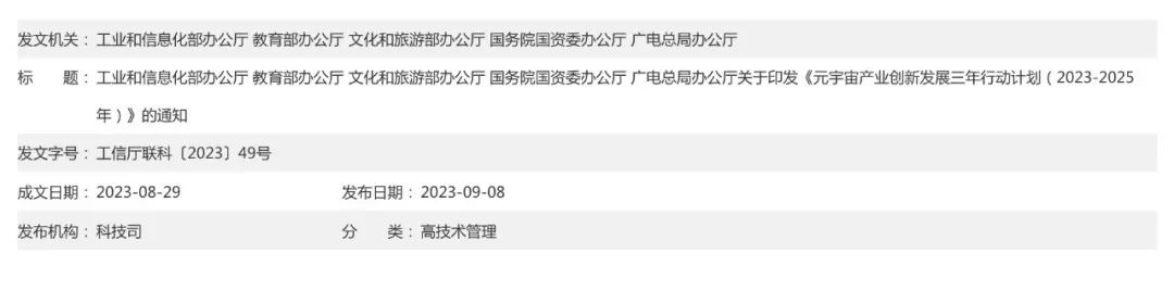 重磅利好 | 五部委联合发布《元宇宙产业创新发展三年行动计划》