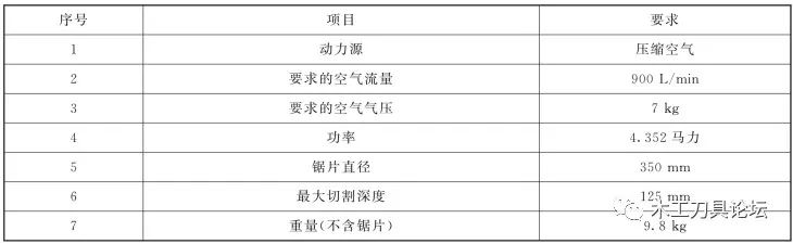 圆盘锯主要采用空气压缩机或高压空气瓶驱动气动马达高速运转,实现快速切割,其主要技术指标见表8-1。