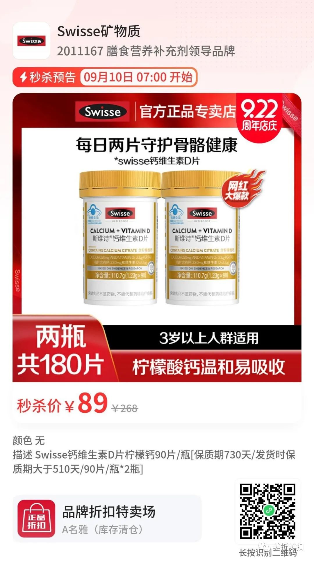 89到手两瓶,柠檬酸钙+维生素D3更好吸收,温和不伤胃!可以全家人一起吃~