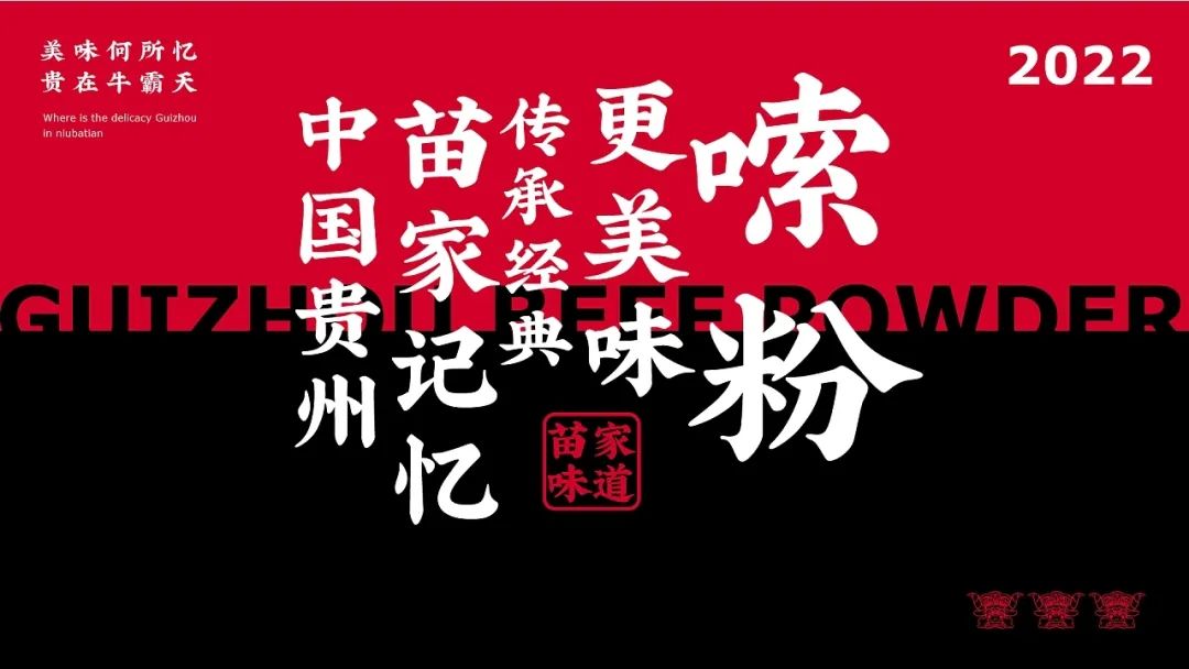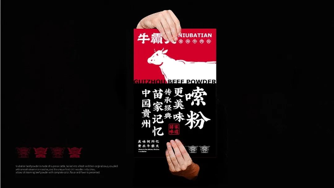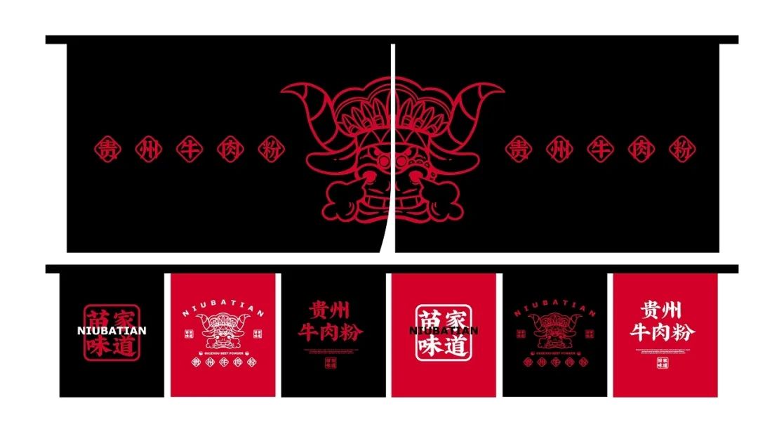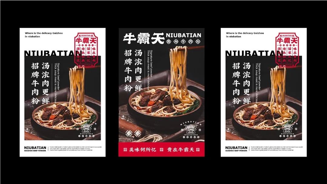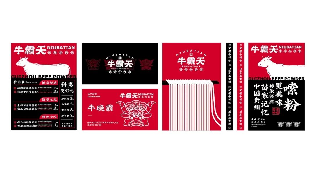 今天给大家分享一款来自贵州的牛肉粉品牌视觉设计,以红色和黑色作为品牌的主题色,红色代表热情似火的贵州人民和热辣的贵州美食,黑色则代表了贵州的连绵起伏的山脉。