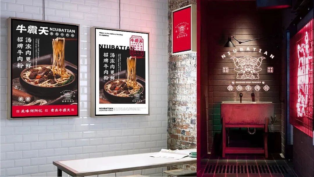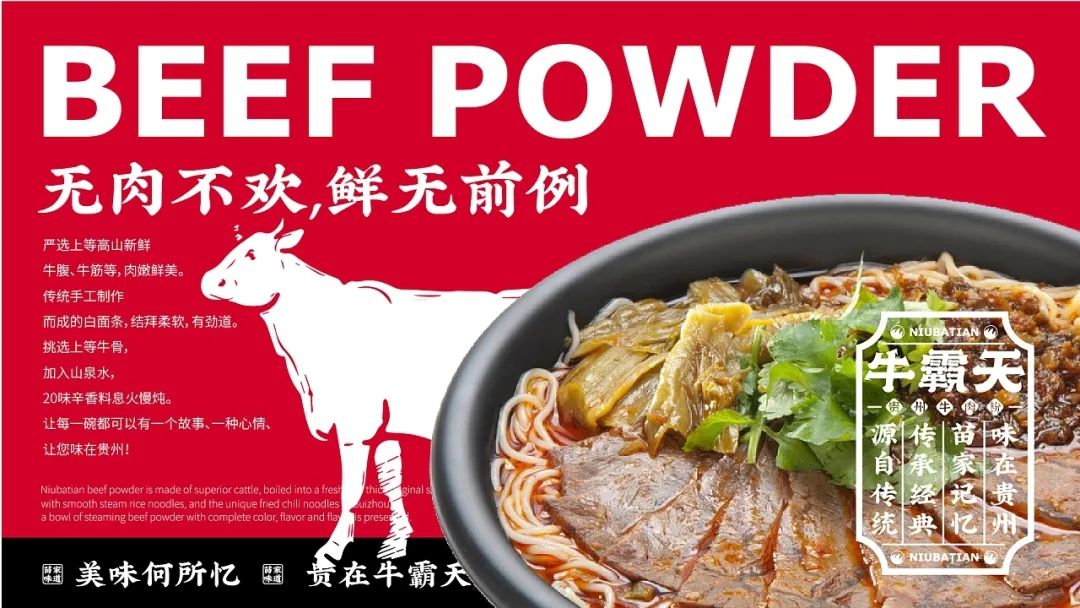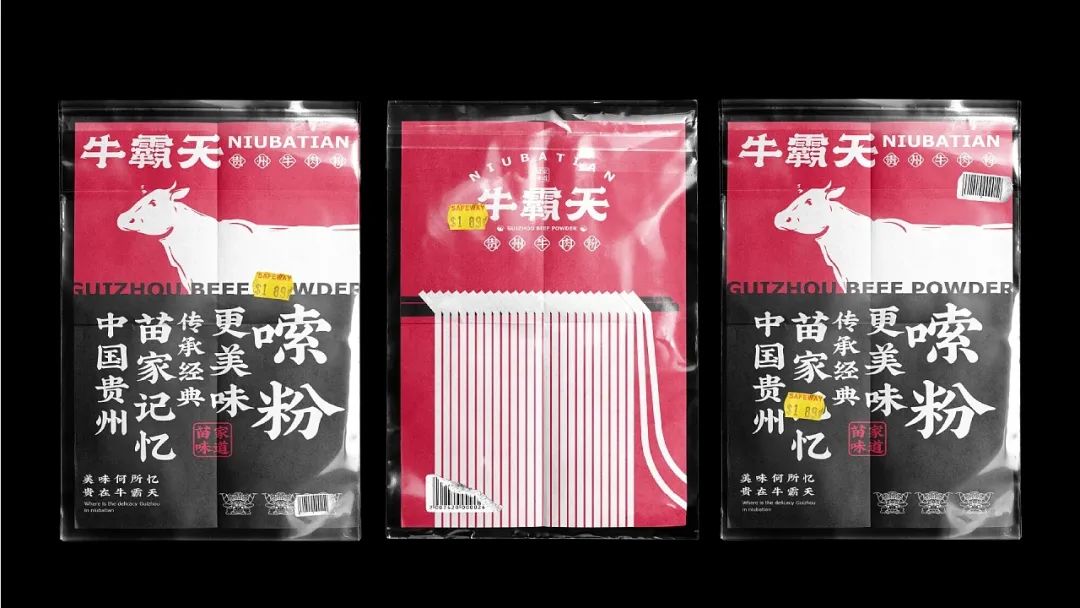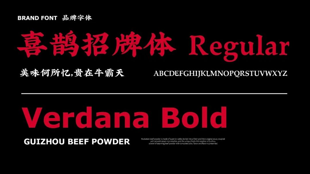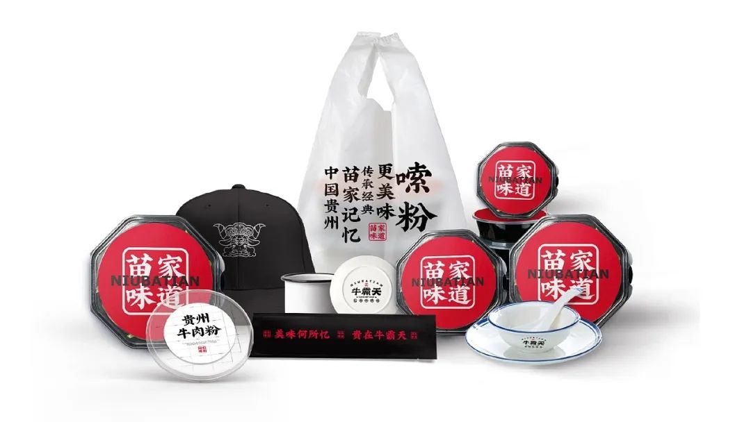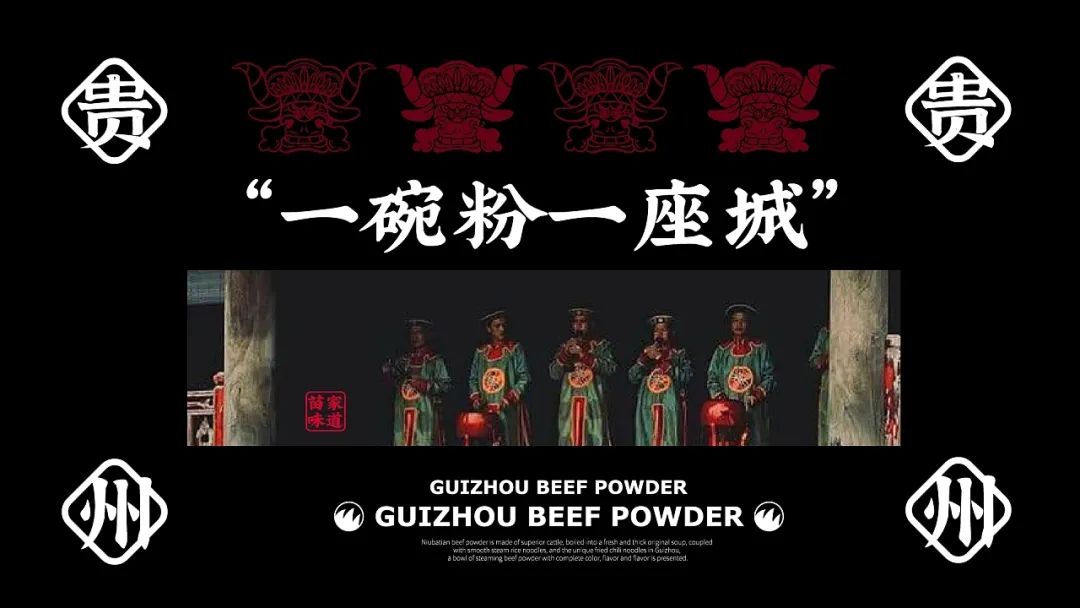 今天给大家分享一款来自贵州的牛肉粉品牌视觉设计,以红色和黑色作为品牌的主题色,红色代表热情似火的贵州人民和热辣的贵州美食,黑色则代表了贵州的连绵起伏的山脉。