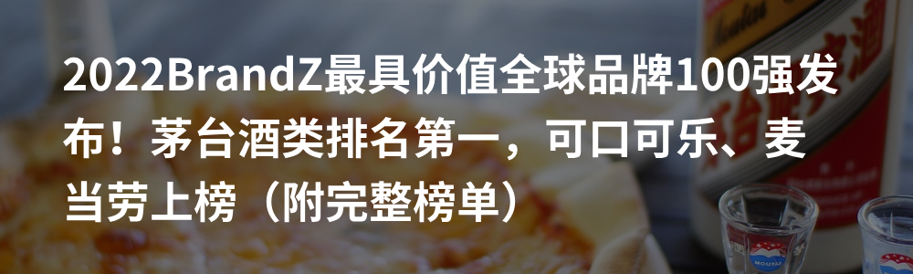 *百强榜单涉及的21个行业包括:酒类、服饰、汽车、商业解决方案与科技服务、休闲餐饮、消费科技与生活服务平台、能源、快餐、食品饮料、医疗保健、家用电器、物联网生态、物流、媒体和娱乐、个人护理、房地产、地产中介、零售、电信服务、旅游服务,银行和保险行业在今年的统计过程合并成了“金融服务”行业。凯度BrandZ的数据是全球品牌价值评估领域的硬通货。它将严谨的财务分析与广泛的品牌资产研究相结合,量化了品牌为企业的财务表现所做出的贡献。自1998年以来,凯度BrandZ已经在全球54个市场上调查了420多万名消费者,涉及超2万个品牌,并且与全球商业领袖分享了相关洞察。凯度BrandZ最具价值中国品牌是中国市场内权威公正的品牌排行,品牌估值综合衡量品牌的财务表现与品牌在消费者心目中的品牌力。因此入选资格是:作为全球领先的品牌数据与分析公司,凯度是世界级强品牌不可或缺的专业伙伴。我们将有意义的消费者态度和行为数据,强大可靠的数据资源与评估标准体系,以及创新的数据算法与技术相结合,揭示人们是如何思考、感受和行动。我们帮助客户达成全景心智洞察,塑造卓越品牌未来。* 本文经凯度授权转载,不代表FBIF立场,原文标题《2023年凯度BrandZ最具价值中国品牌100强正式发布:腾讯、阿里和茅台蝉联前三甲(附下载)》,转载请联系出处。