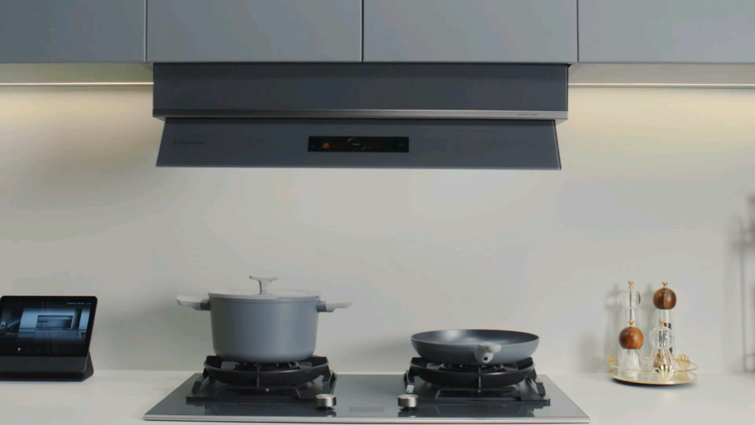 其实,做出全嵌智慧厨房最难的不是将厨电尺寸做小,嵌入橱柜,而是要全嵌的同时还要好用。要想烟机全嵌入橱柜不难,但是拢烟腔变小会导致油烟逃逸、吸不净;将灶具做薄不难,但压缩通气管路、阀体等体积后,无法保证火力值和燃烧效率,甚至还会导致燃气燃烧不充分,产生安全隐患。