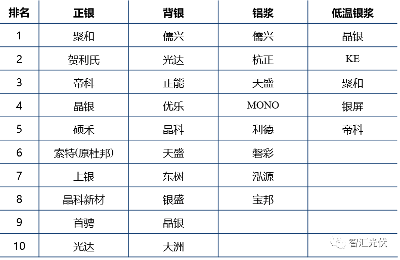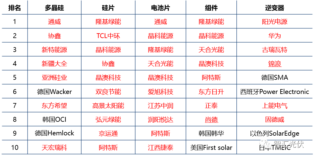 表:2022年光伏主要环节产量前十企业
