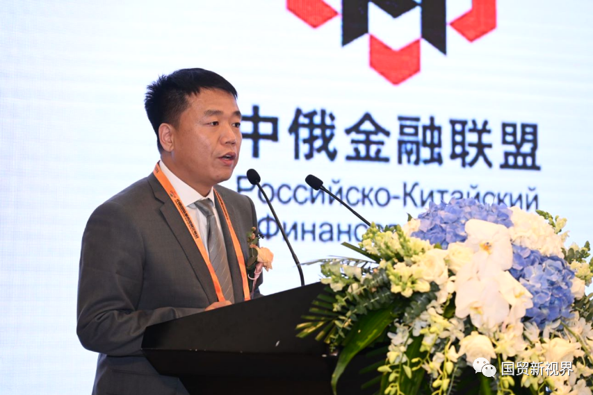 哈尔滨银行对俄与跨境金融总部总经理李飞发表演讲