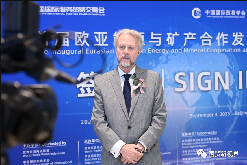The forum is co-hosted by the World Trade Point Federation and the China Association of International Trade, and organized by the World Trade Point Federation Beijing Center, China Association of International Trade Executive Committee on Economic and Trade Exchange of Eurasian Enterprises, the Beijing International Economic and Trade Development Association, and the The United Consulting Service (Beijing) Ltd. The forum makes full use of the platform of the CHINA INTERNATIONAL FAIR FOR TRADE IN SERVICES in 2023 to promote product trade and related service trade development by taking energy and mineral resources international cooperation as a starting point. It has received strong support from embassies of major energy and mineral powers under the "Belt and Road" framework, including the Russian Federation,and the Republic of Angola, the Republic of Cameroon,the Islamic Republic of Pakistan, as well as enterprises such as China Overseas Engineering Co., Ltd., Yancheng State-owned Assets Investment Group Co., Ltd., and Harbin Bank.