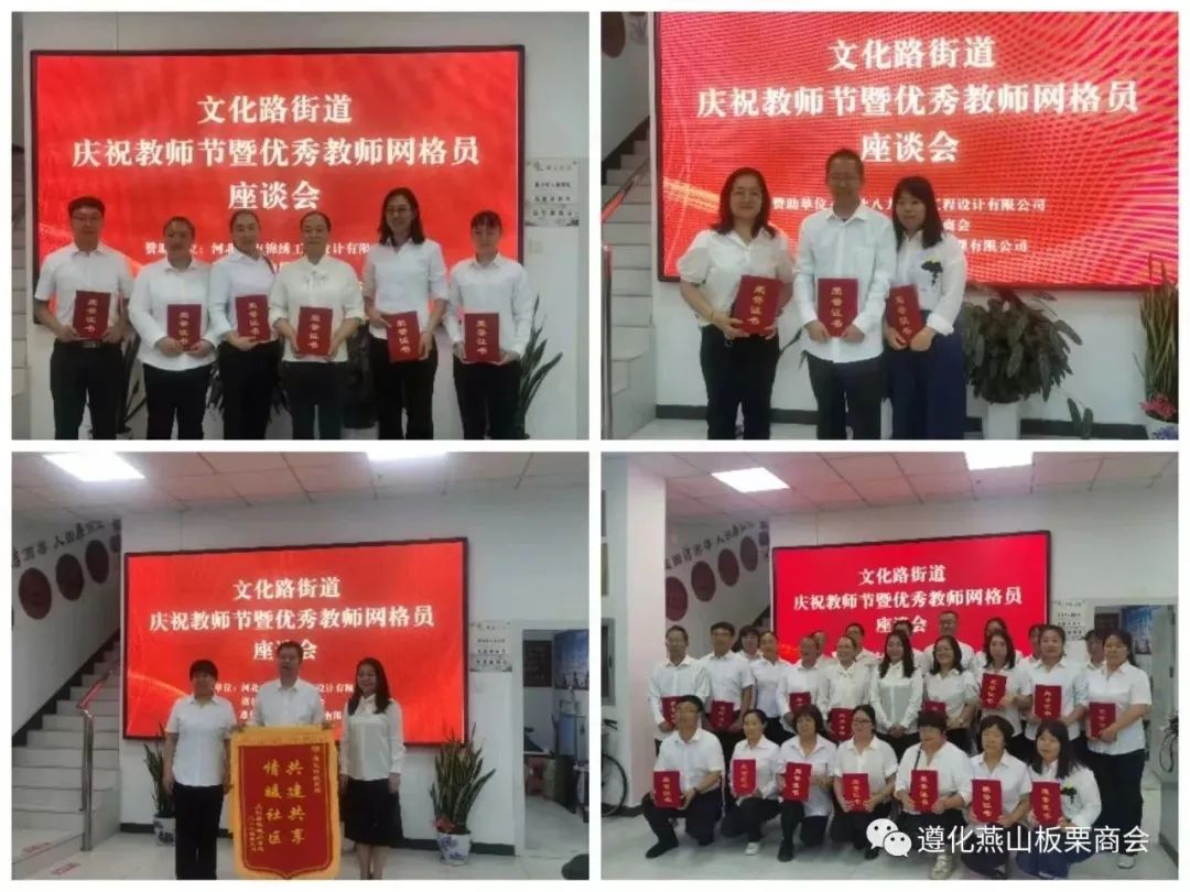 9月9日上午,文化路街道举办庆祝教师节暨优秀教师网格员座谈会。参加本次座谈会的有市委政法委副书记徐刚、市教育局党组副书记贾贺友、文化路街道党工委书记彭国利、文化路街道党工委副书记张晓江,文化路街道办副主任王云辉、遵化市燕山板栗商会会长邵建东、党支部书记陈宾、遵化市海泉物业管理有限公司支部书记李永泉及33位遵化市各社区优秀教师网格员。
