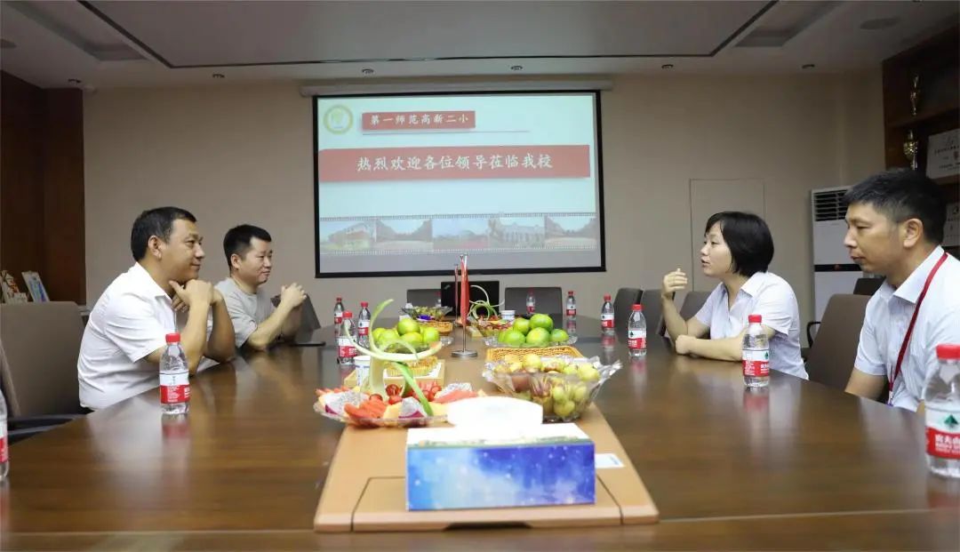 高新二小校长胡落新、党支部书记文杰热情接待,代表全体教师对金杯电工长期以来的关心和支持表示十分感谢。活动中,胡校长讲道,高新二小不断发展壮大,现有36个班级共1682名学生,办学质量稳步提升,未来将继续秉承“给孩子一个幸福而有意义的童年”的教育理念,不断加强教育教学工作,持续做好人才培育。龙妮妮对老师们悉心培育孩子们和辛勤付出表达了感谢,并介绍了金杯电工工人产业队伍建设等方面的情况和取得的特色工作经验。胡校长对金杯电工的党建工作、人才培养、一岗多能机制及暑期托管班活动等连连称赞。双方表示,将进一步加强校企交流,包括党建工作联动、工会工作联动,同时,未来将通过开展德育研学等更多元的活动,进一步加深校企合作,促进校企双向赋能、共同发展!