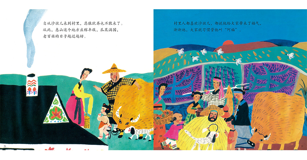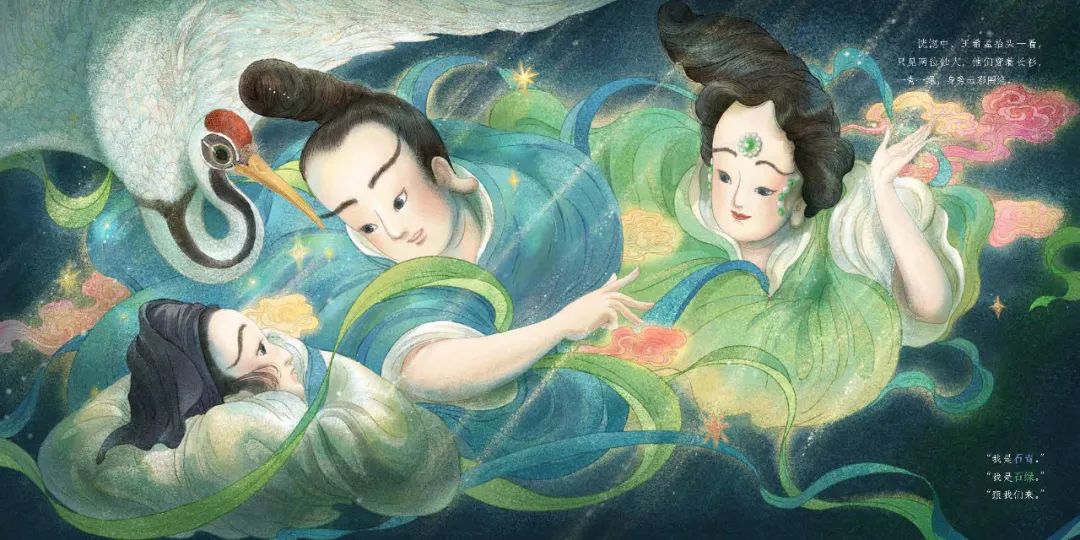 这本绘本是以名画《千里江山图》背后传奇故事为核心,故事讲述了北宋年间,少年希孟从小热爱画画,得徽宗亲授,他钻研名画经典,苦练绘画技法,全身心投入在绘画上,却始终画不出理想的山水。失望和迷茫之际,少年希孟在梦中误入仙境,获得青绿仙人的指点。