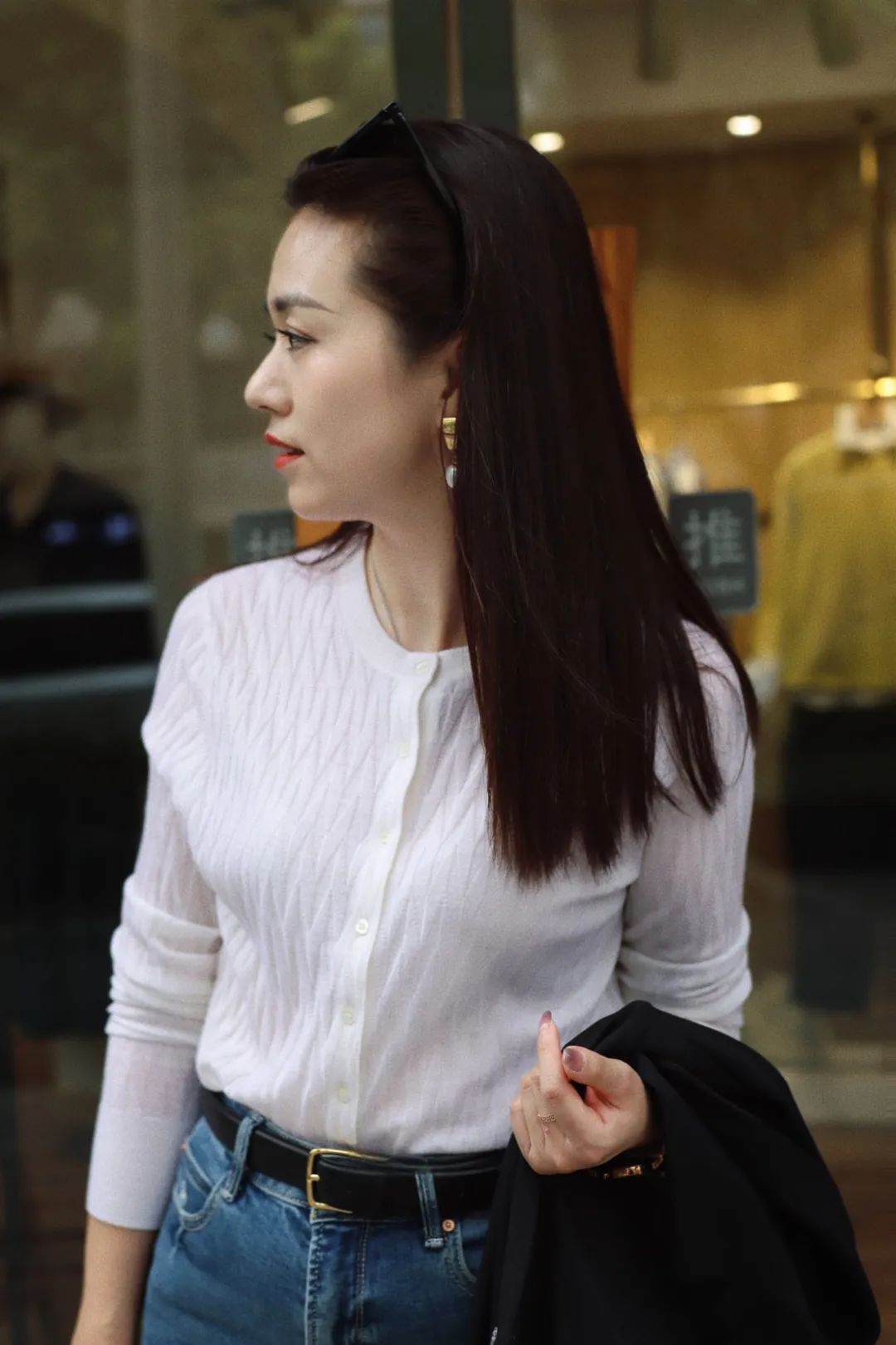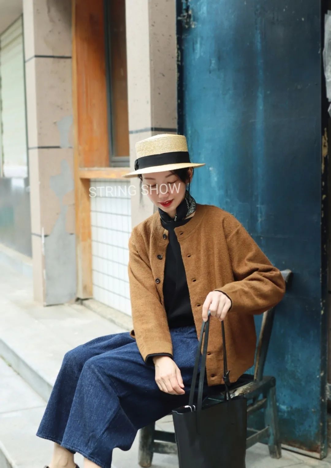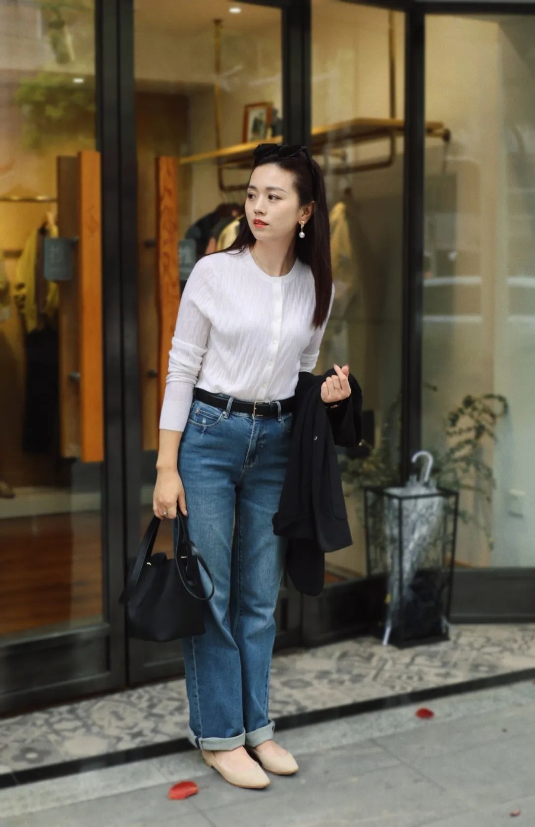 针织衫搭配直筒牛仔裤