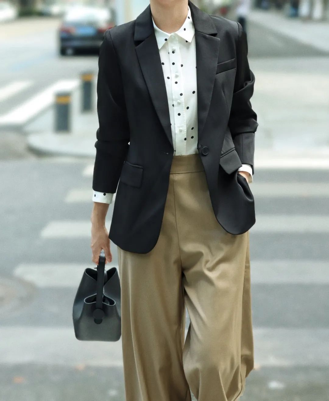 搭配极简的阔腿通勤裤