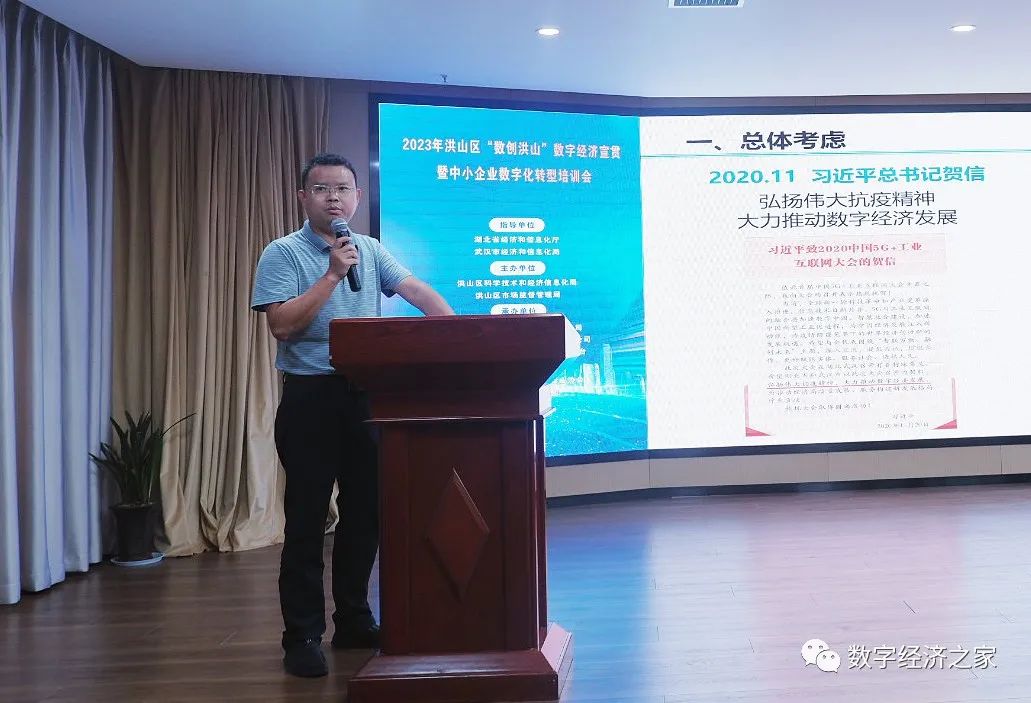为深化5G+工业互联网融合应用先导区、光通信设备及光电子子器件制造特色产业集群的建设,努力打造具有洪山特色的数字经济新高地,在湖北省经济和信息化厅、武汉市经济和信息化局的指导下,9月8日下午召开了“2023年洪山区‘数创洪山’数字经济宣贯暨中小企业数字化转型培训会”。