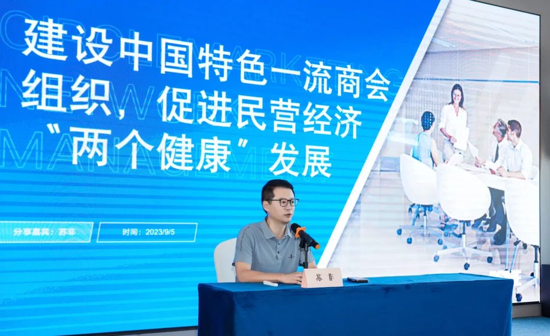 开班仪式后,成都市中小企业协会会长、成都市社会组织促进会会长苏非作《建设中国特色一流商会组织,促进民营经济"两个健康"发展》专题讲座。