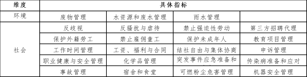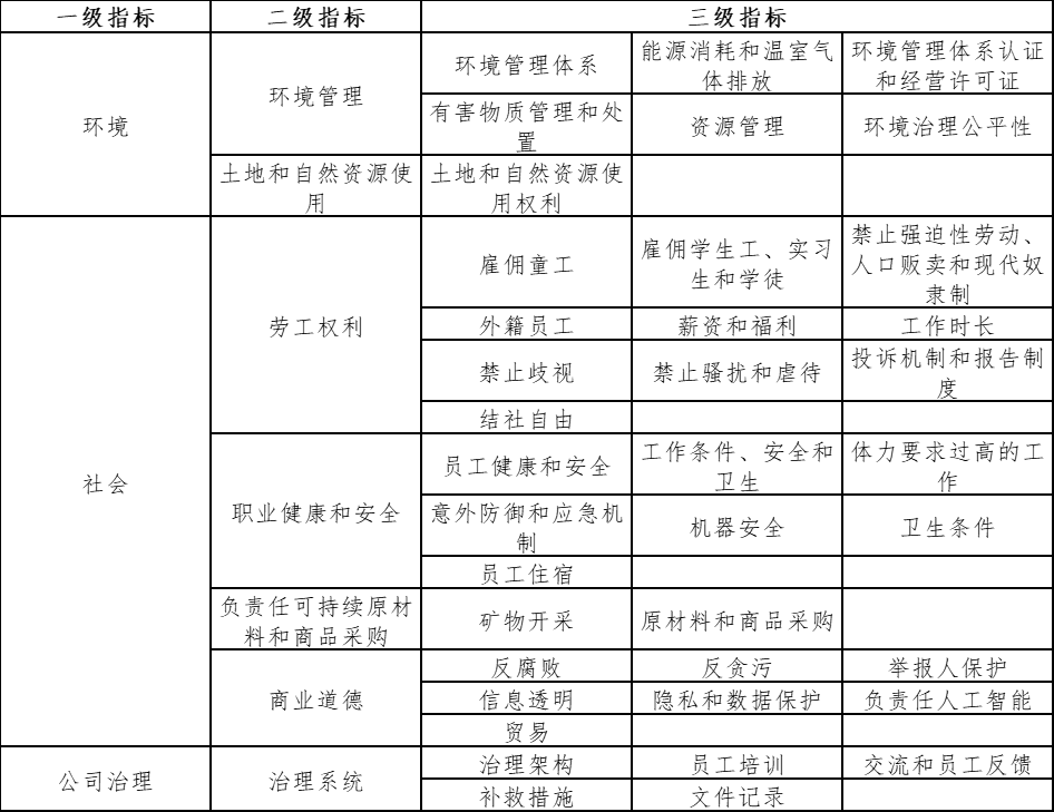 表 1 苹果供应商ESG评估指标