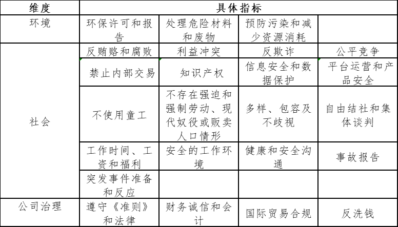 表 5 字节跳动供应商ESG管理要求
