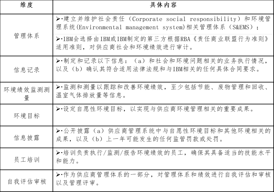 表 3 IBM 供应链ESG管理要求