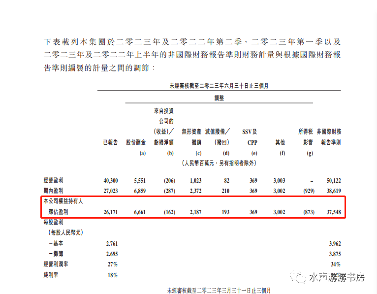 具体来说就是非国际会计准则净利润=国际会计准则净利润+股份酬金+减值及无形资产摊销-来自投资公司的收益净额。