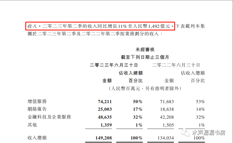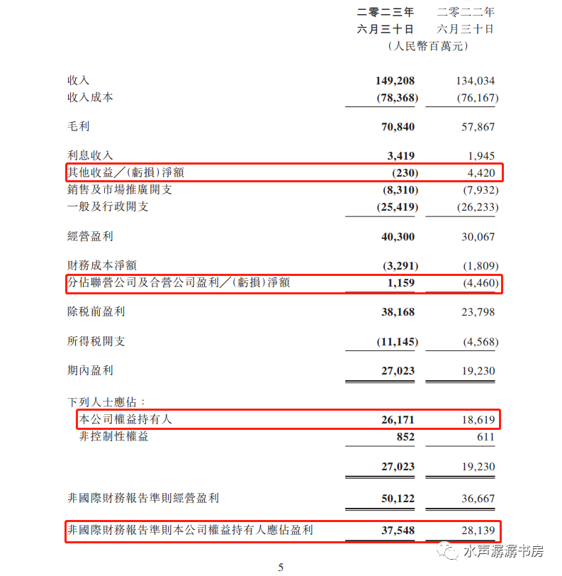 我们先看一下腾讯 2023 年中期报告综合收益表(腾讯 2023 年中期报告第 5 页)。