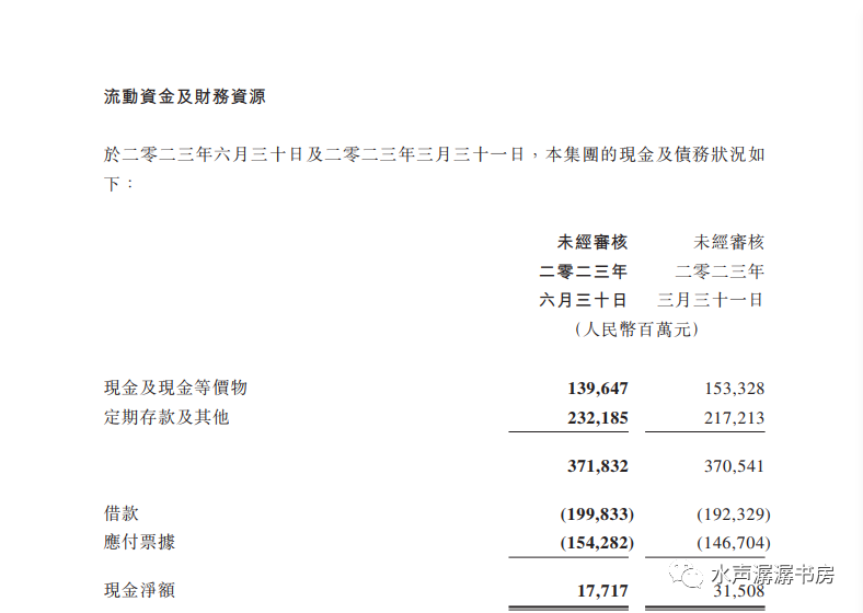 2023 年中期报告第 17 页,公司的现金净额 177.17 亿。