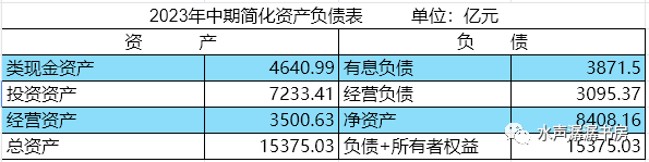 我们将腾讯 2023 年中期报告资产负债表简化如下。