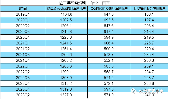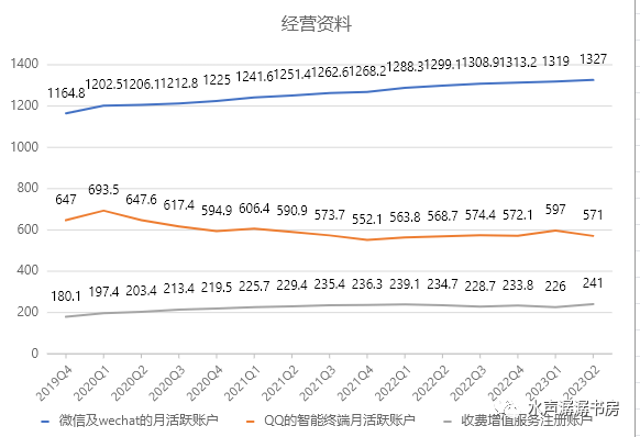 微信月活跃账户和收费会员注册账户在持续稳定地增长,视频号总用户使用时长同比几乎翻倍,小程序的月活跃账户数超过11亿,腾讯视频付费会员数达1.15亿,音乐付费会员数在2023年6月达到1亿,这是腾讯的基本盘。