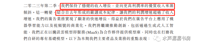 b、2023 年第二季度网络广告收入同比增长 34%,成本同比增长 15%,主要是渠道及分销成本增加。