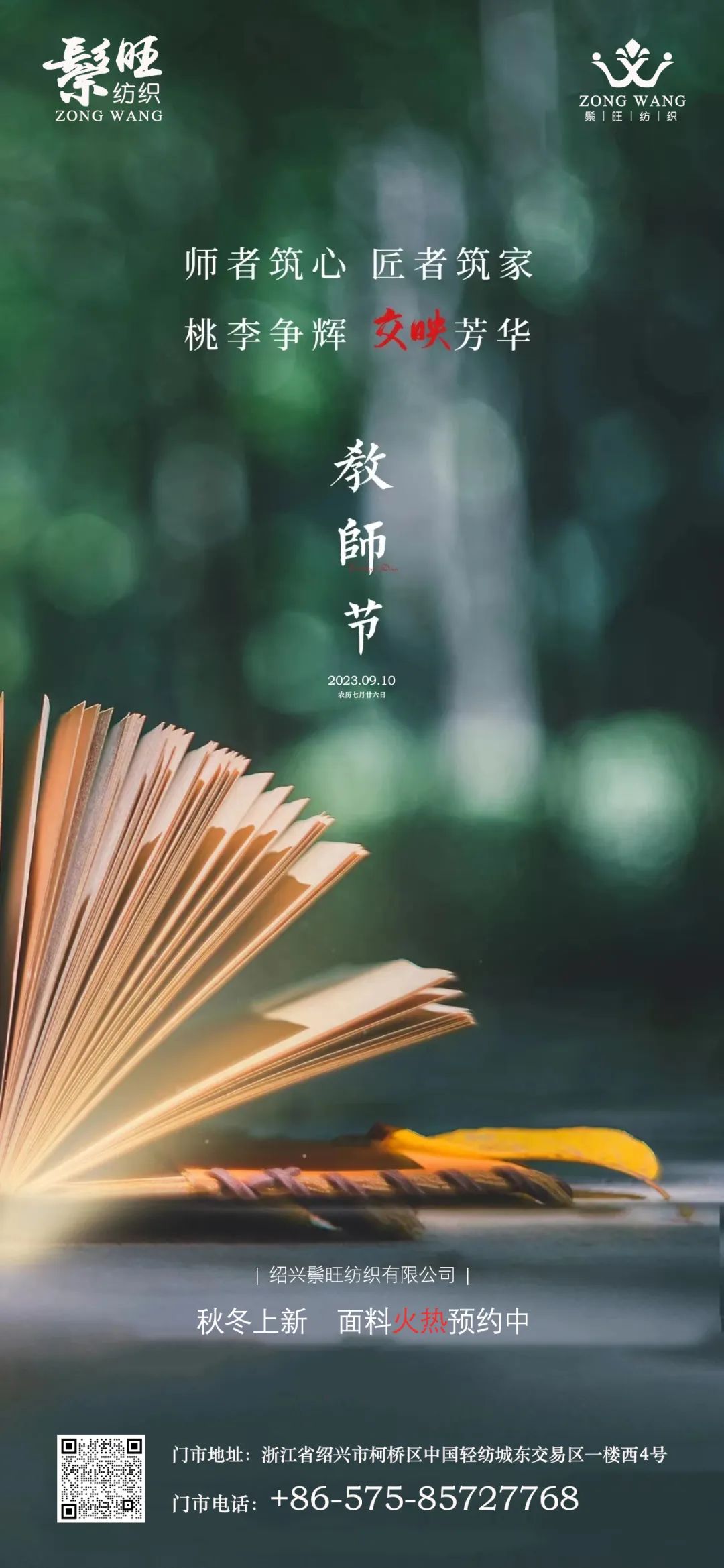鬃旺纺织祝您 教师节快乐!