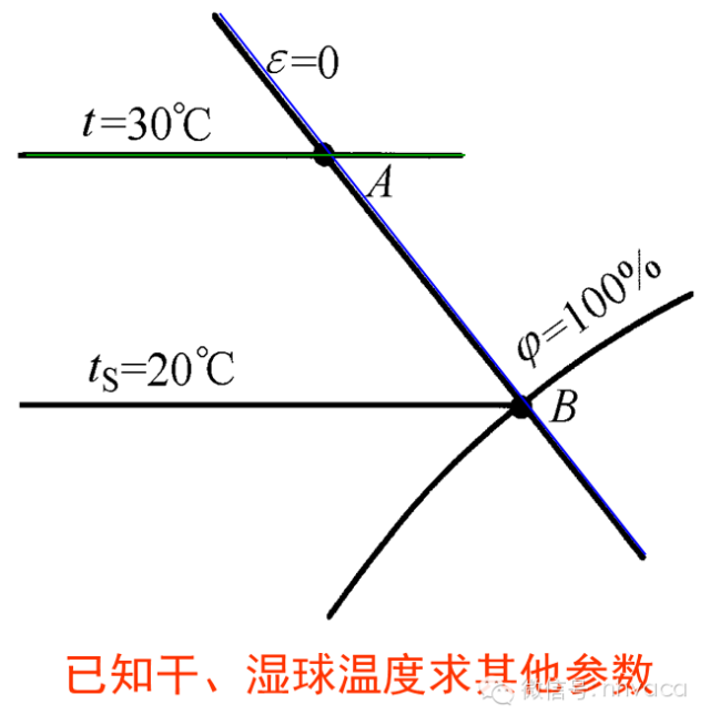 因为等湿球温度线与等焓线基本平行,故工程上近似地用等焓线代替等湿球温度线,即过某一点的等湿球温度线就是过该点的等焓线。