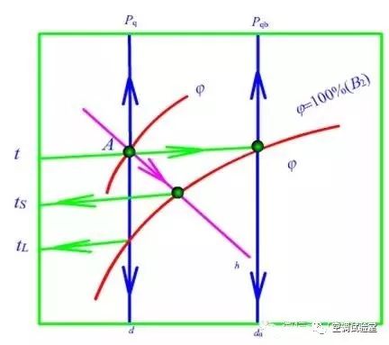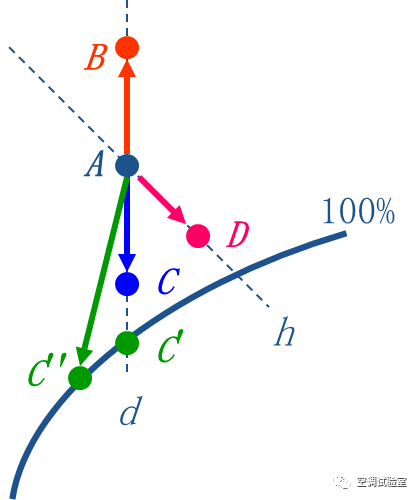 在焓湿图上用垂直向上的直线A-B表示。